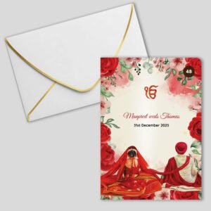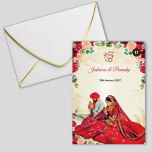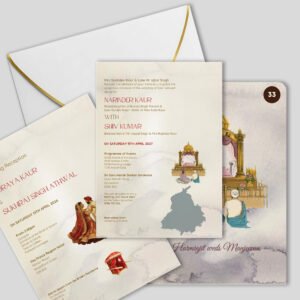 Whether you are having a Muslim, Sikh, Hindu, Christian, or interfaith wedding, hallmarks of Indian, Pakistani or Asian wedding invitations often include elaborate patterns, bold colors, ornate detailing, gorgeous Panjabi, Urdu or Hindi script and lettering, wedding scene imagery, and spiritual symbols. You may also find it interesting to include photos of you and your groom, imagery of the venue, and additional religious elements.